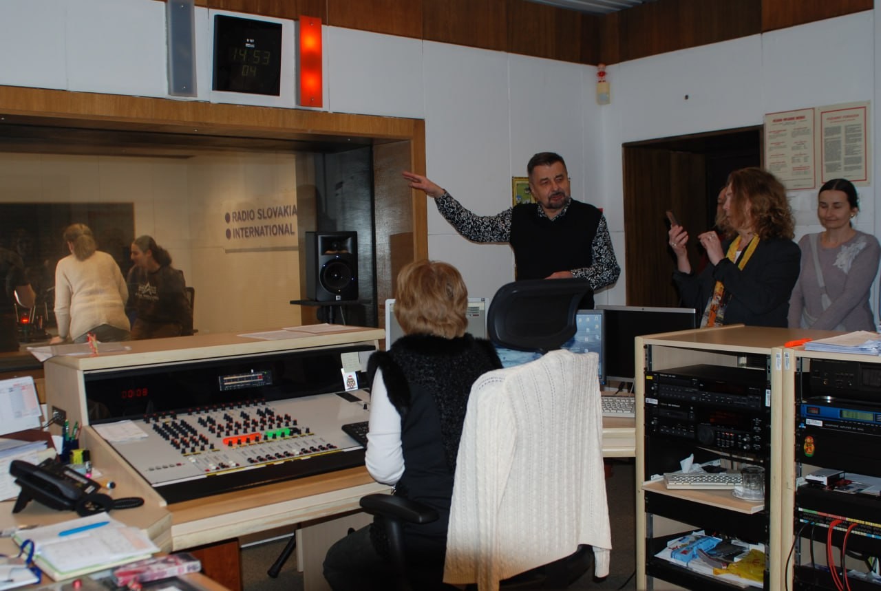 Главный редактор RSI г-жа Миклеова тепло приветствовала гостей и рассказала о работе международного радио, его редакциях, а также о характеристиках самого здания Словацкого радио, его архитектуре и истории. Затем участников ждала увлекательная экскурсия по зданию радио, включая посещение музея и профессиональных студий. Были организованы живые встречи с журналистами, редакторами и звукооператорами, во время которых участники делились своими идеями и планами, а также могли получить исчерпывающие ответы на интересующие их вопросы.